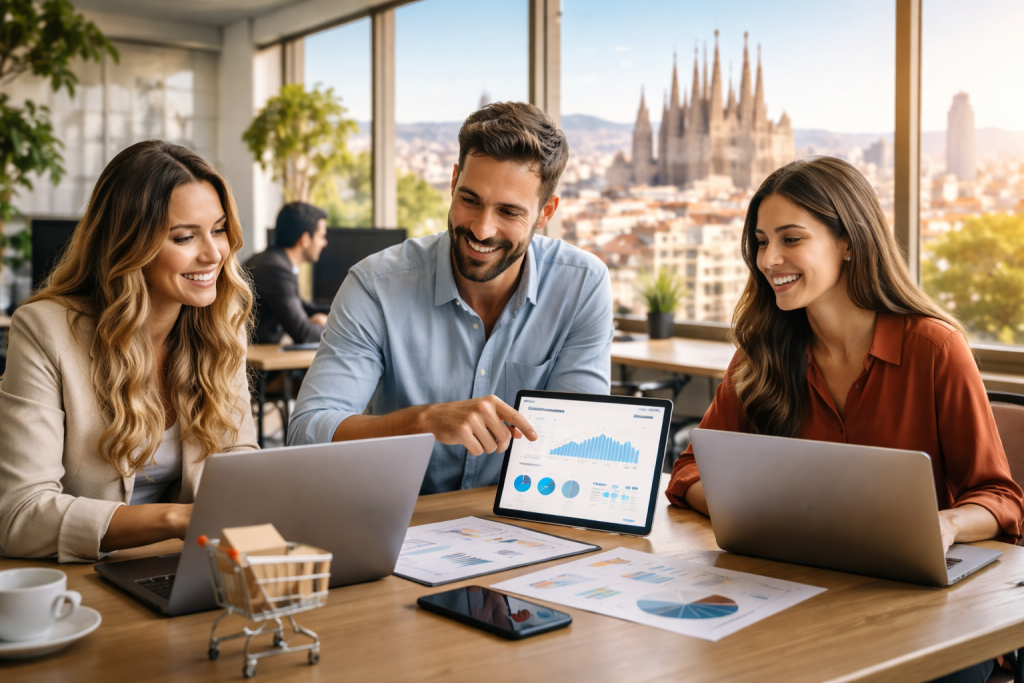 Otra ventaja esencial es la proximidad. Al elegir una agencia ecommerce Barcelona local, obtienes un mejor entendimiento del mercado catalán. Conocemos las peculiaridades de tus clientes (idioma, cultura, festividades locales) y la competencia regional. Podemos reunirnos presencialmente para ajustar estrategias o visitar tu negocio para detectar oportunidades. Todo esto refuerza la comunicación y la confianza en la colaboración.