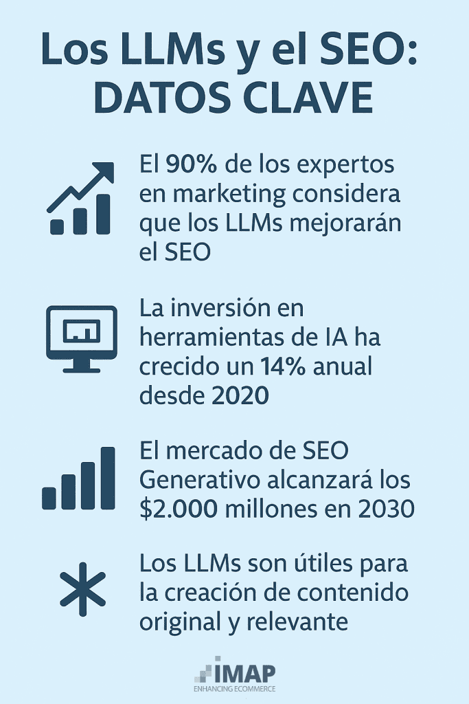 En este artículo exploramos qué es un modelo LLMS, su impacto actual en el marketing digital y especialmente en el posicionamiento SEO. Veremos la evolución de la IA generativa, cómo buscadores como Google integran estos modelos, los beneficios concretos que aportan a una estrategia SEO (desde la generación automatizada de contenidos hasta el análisis semántico y la automatización de tareas repetitivas) y cómo una agencia como IMAP puede integrar esta tecnología para escalar los resultados de sus clientes. También revisaremos casos de uso, estadísticas recientes de 2024-2025 y tendencias que indican hacia dónde se dirige esta revolución.