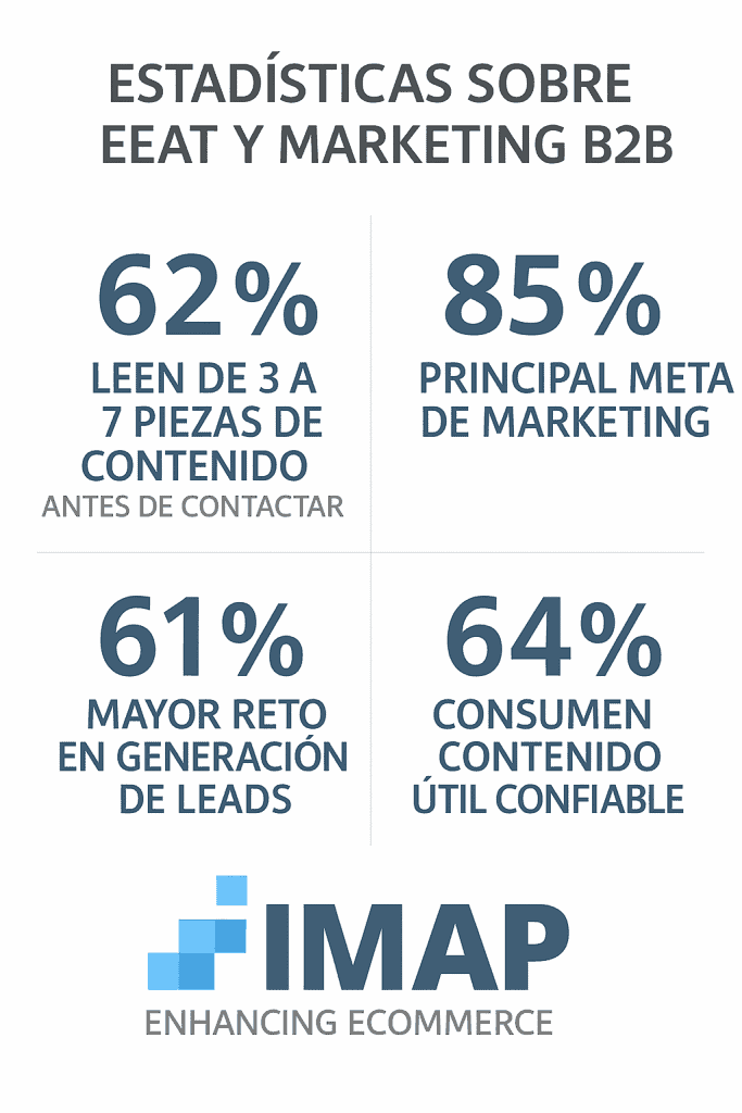 En el marketing B2B actual, generar leads no se trata solo de cantidad, sino de calidad y confianza. Las empresas deben captar la atención de clientes potenciales cada vez más informados y exigentes, construyendo una relación de credibilidad desde el primer contacto. De hecho, el 62% de los compradores B2B consume entre 3 y 7 piezas de contenido de una marca antes de decidir contactar con un representante de ventas. Esto significa que, antes de convertirte en un lead, tu público objetivo ya ha evaluado la credibilidad online de tu empresa a través de su marketing de contenidos. Aquí es donde entra en juego la estrategia EEAT: un enfoque que enfatiza la Experiencia, la Especialización (Expertise), la Autoridad y la Confianza (Trustworthiness) en tu contenido digital.